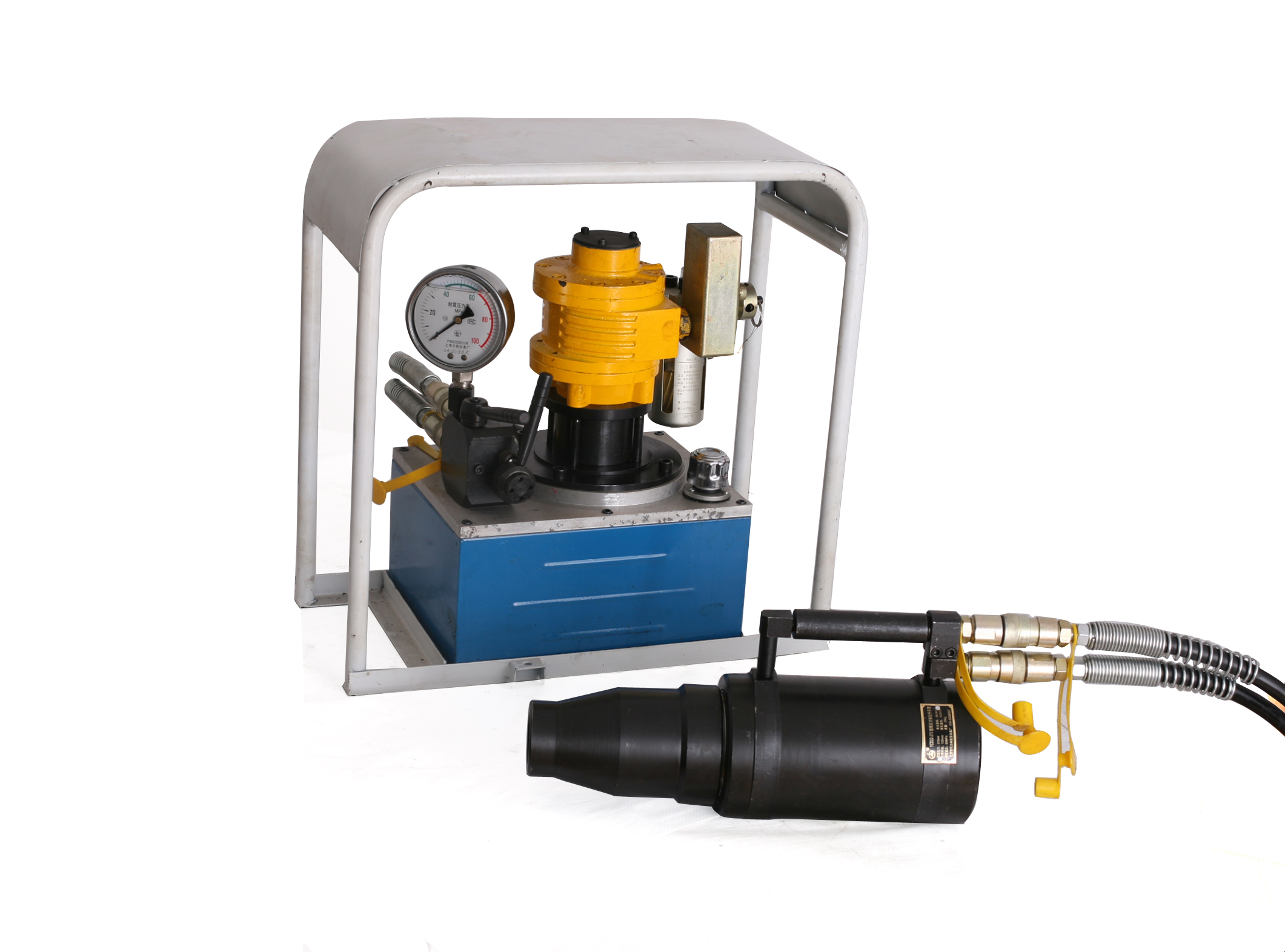气动锚索张拉机具是由气动液压泵和张拉千斤顶组合而成。张拉千斤顶在液压油泵的驱动下,自动完成抓紧锚索、加载张拉、助推锚具锁固,张拉卸载和松脱锚索的过程。专用于矿井、隧道、桥梁等预应力张拉施工工程。由于整套机具的动力源是高压气体,因此防爆性能好。叶片式马达的外特性,也使机具具有张拉初期速度快,张拉后期速度慢的优势,刚好满足张拉过程需求。